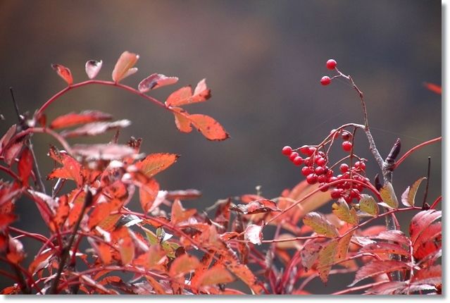 手前の赤色はこの ナナカマド ですよ~