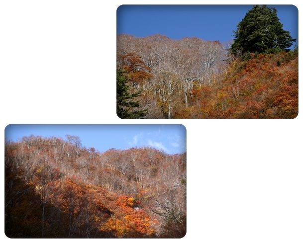 上の方だともう葉っぱを落としてしまった木々が有りますよ~