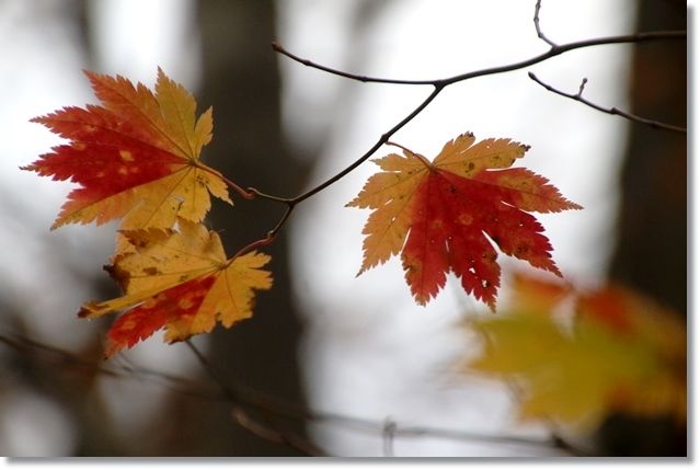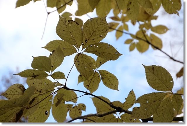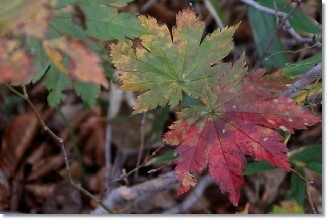 明るい黄色に黄葉し始めているのは ミネカエデ