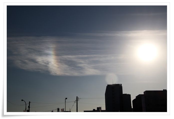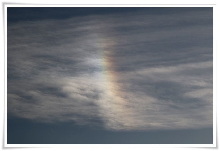 車を出て空を見ると・・・・・雲の中に虹色の光が見えたよ