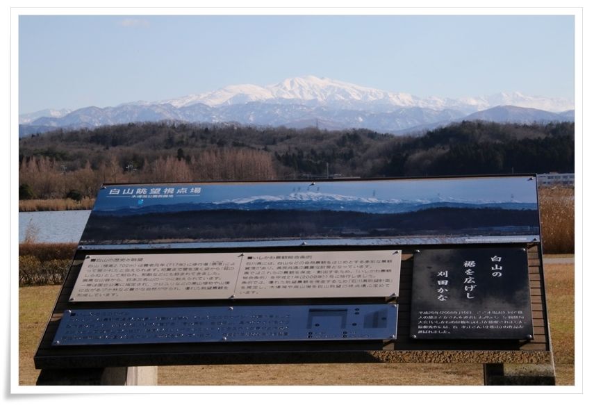 ここからは 木場潟 越しに ​白山​ が眺望できるスポットだからね