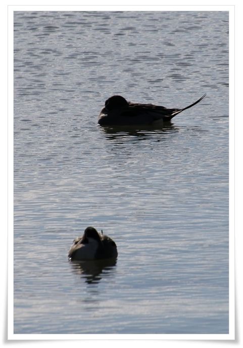 ちょっと逆光気味で、羽の間に頭を突っ込んで浮き寝中ですが