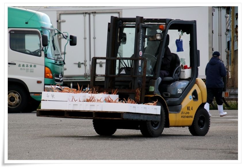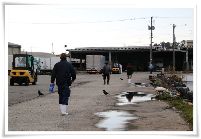 こちらから漁連に向かうトロ箱の中は水揚げされた商品が入っていて