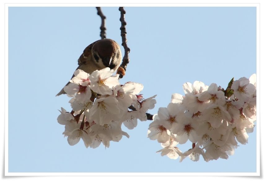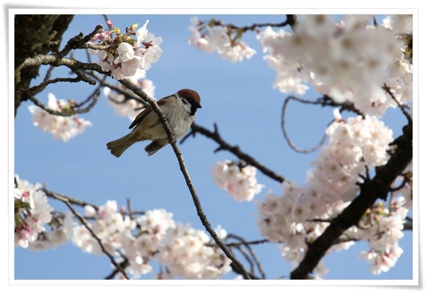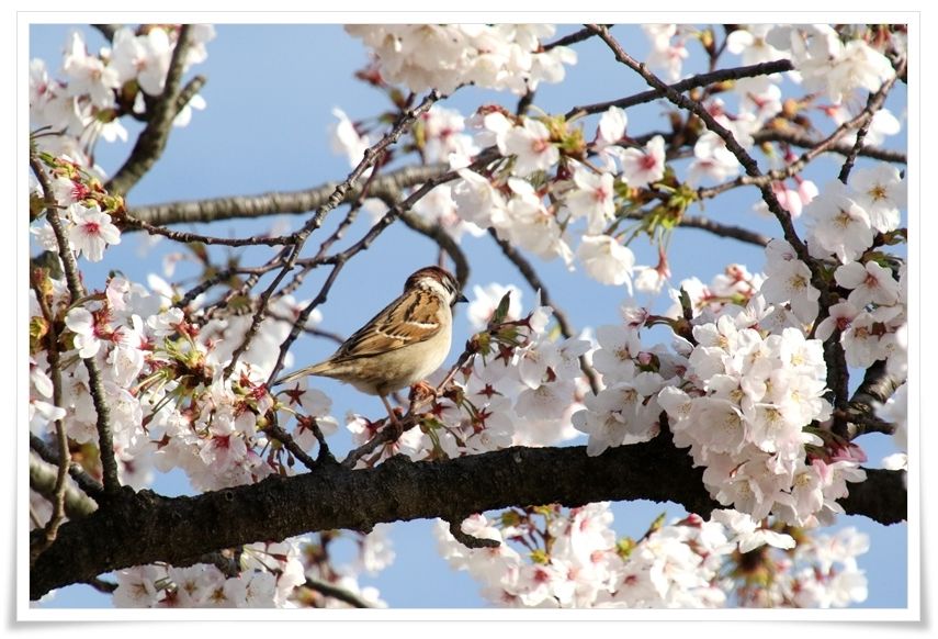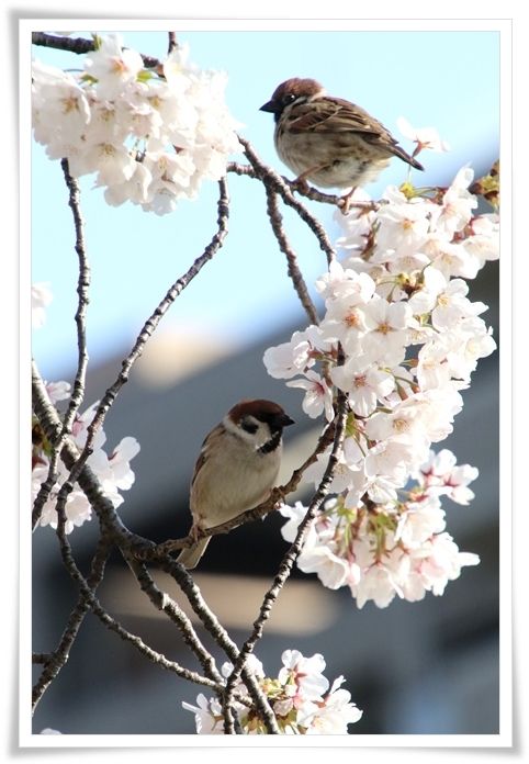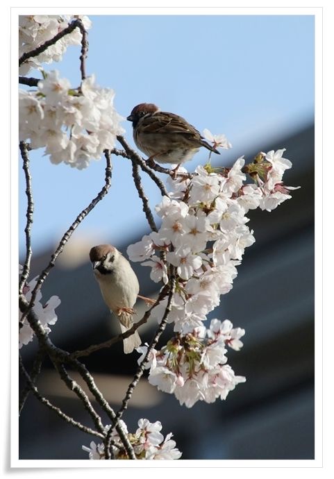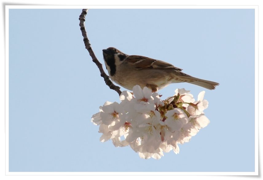 桜の周りでは スズメ がとっても賑やかに飛び回っていましたよ~
