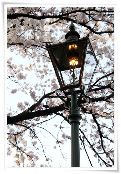 川沿いのちょっとレトロな雰囲気の街灯にも明かりが灯り始めました
