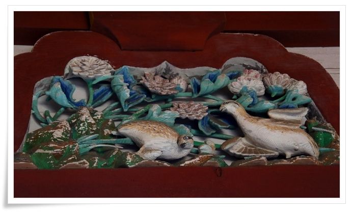 楼門 の彫刻   これって何の鳥かしら  雷鳥じゃ無いよね~