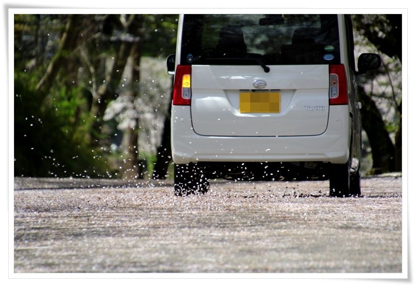 を出て行く車が走ると散った花びらが舞い上がる様子が見えてましたよ