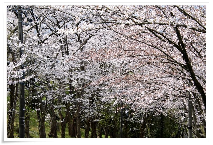 いつもこっち方面へ桜の季節に出かけると、山の上の方に桜がいっぱい咲いている場所が有るのは見ていたんだけど