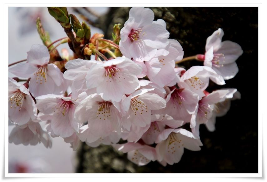 ソメイヨシノ もピークを過ぎて蕊の周りが赤くなり始めているのでピンク色も濃く見え始めています