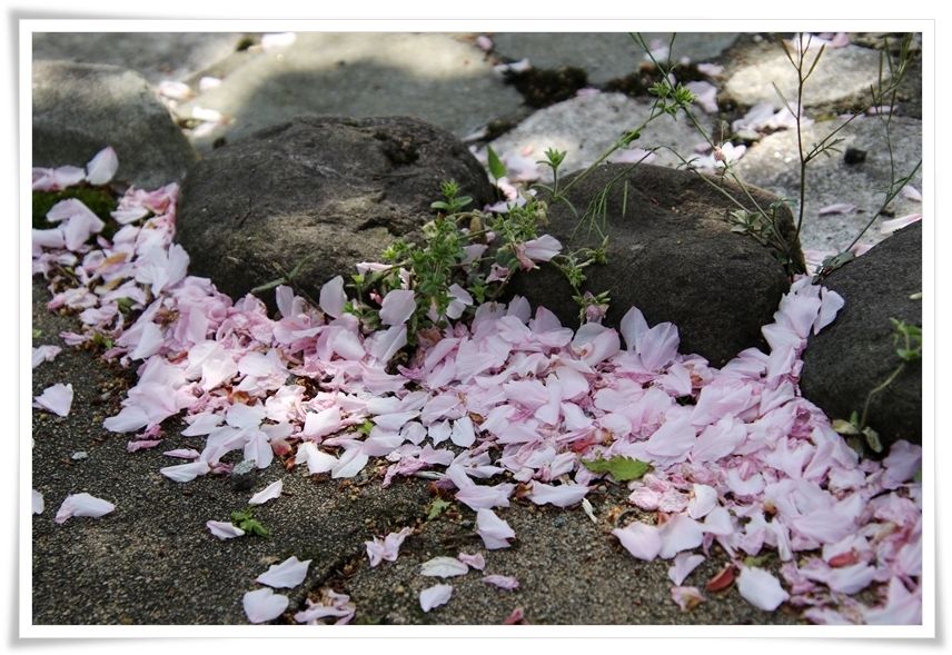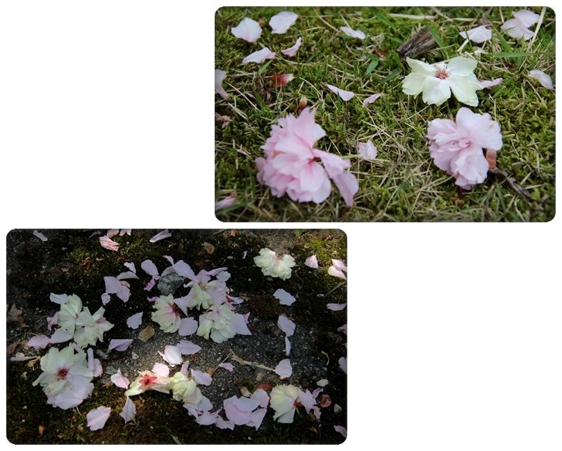 関山 が散るときは花柄ごとの場合も花びらがばらばらになる場合もあるようです