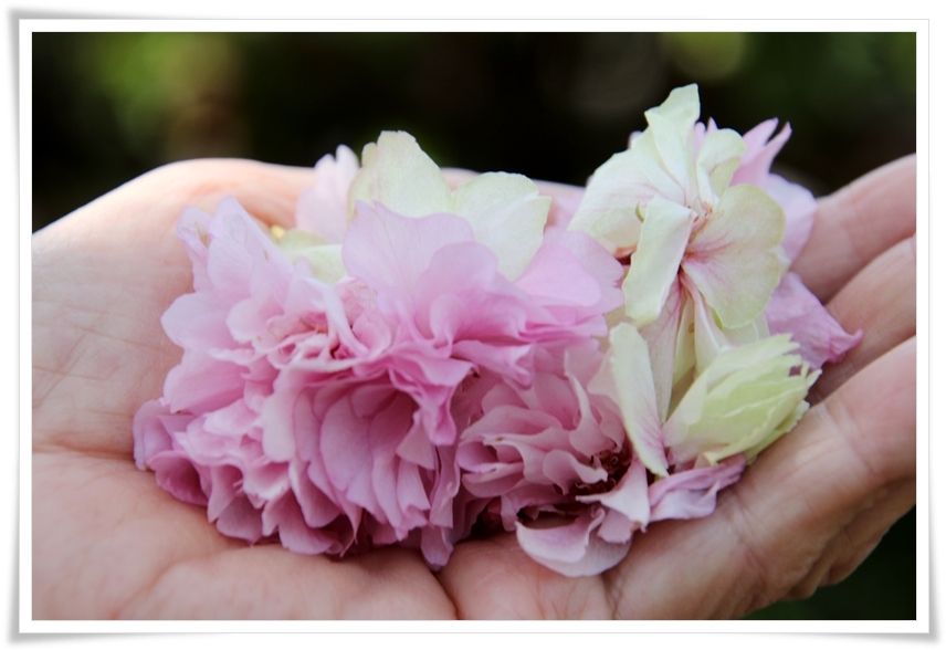 花柄ごと落ちている綺麗なのを選んで手の上に・・・・・・