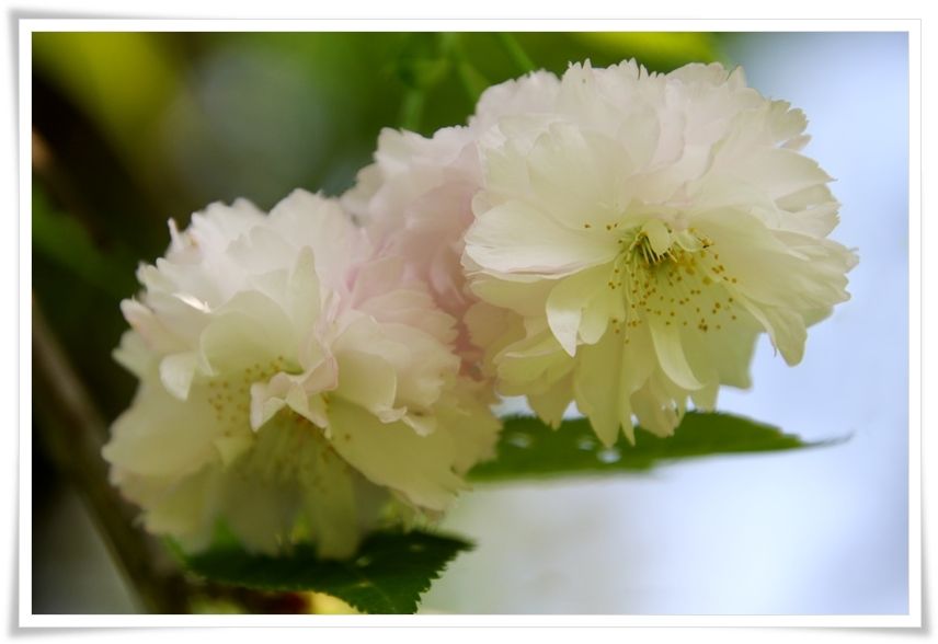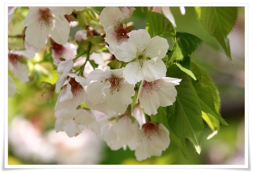 ほんのりと薄紅色の咲き始めから白色になるまで美しい桜です