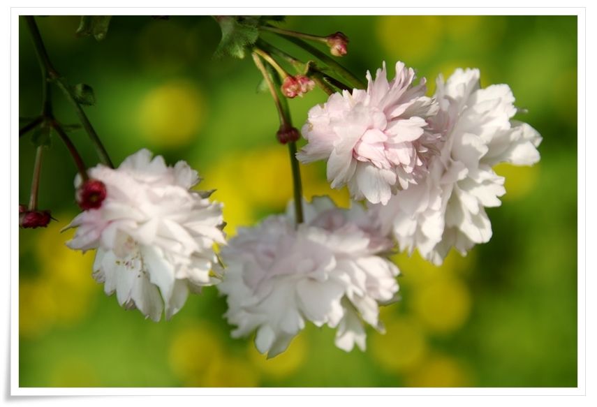一重と八重の花が混じっているタイプのようですが、さすがにピークは過ぎてます