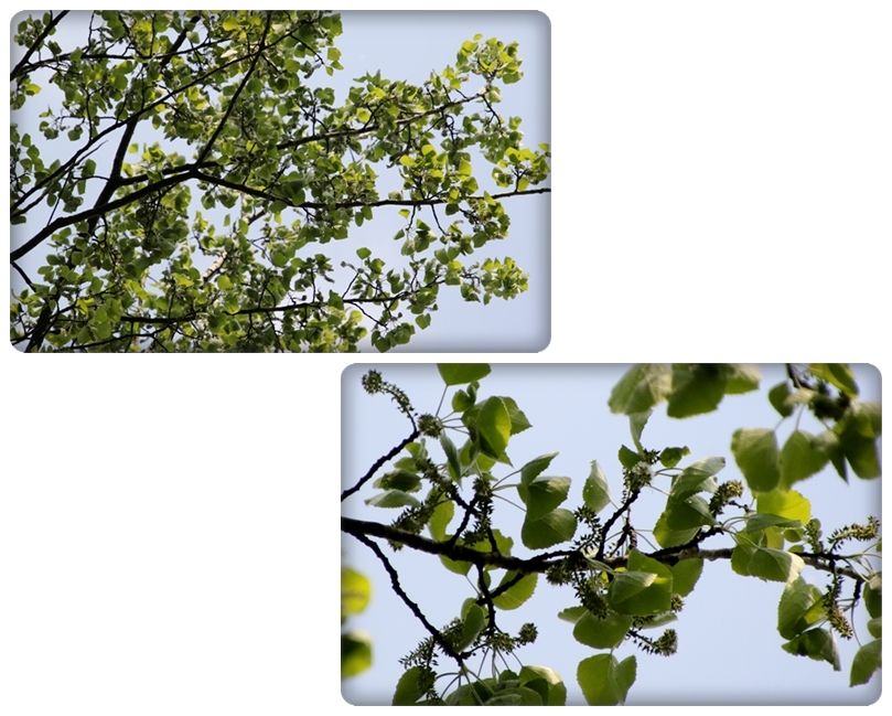 見上げると高い枝にまだ綿毛が広がっていない花のあとを見つけました