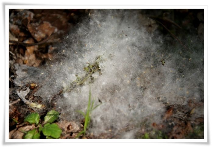 地面の上にこんな綿毛がたくさん落ちていました