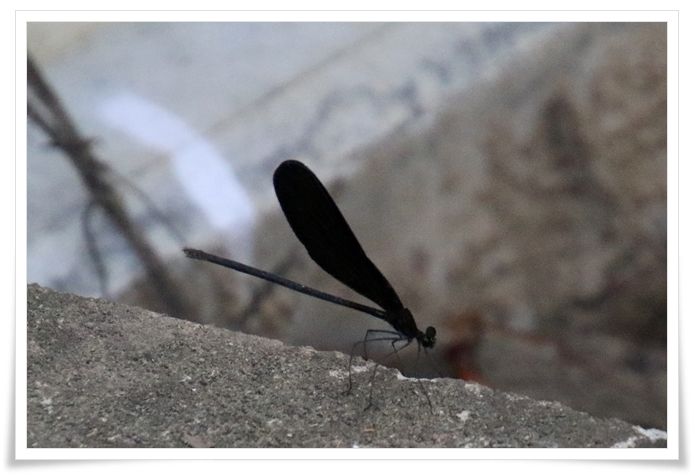 水路の傍で ハグロトンボ を見つけました