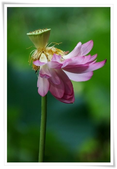 半分だけ花びらの散ったハス