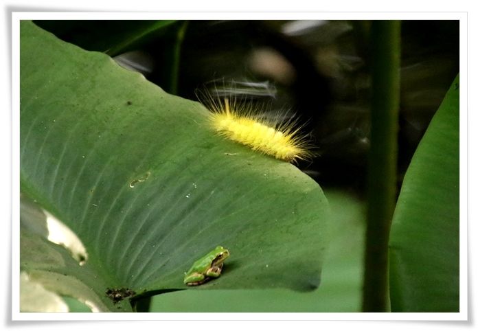 すぐ近くの葉っぱに真っ黄色の毛虫を見つけたよ~