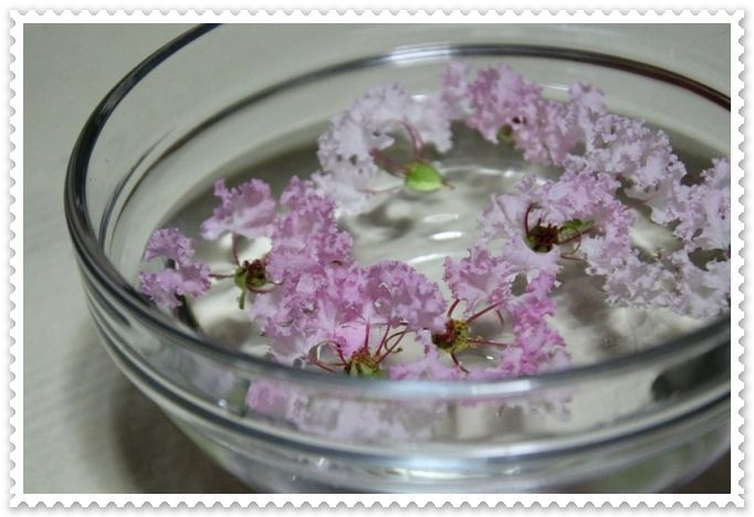 最後は落ちていた サルスベリ の花を持ち帰って水に浮かべた様子