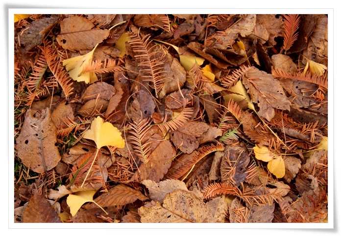 この辺りの落ち葉は イチョウ や メタセコイア などの茶色系でしょうか