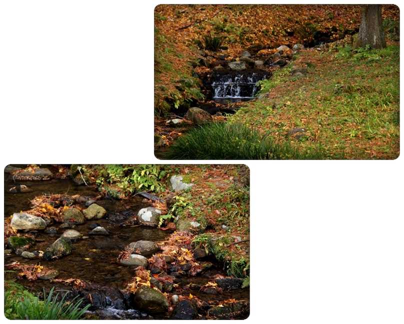 小川の辺りは流れの中にも落ちが葉少し溜まっています