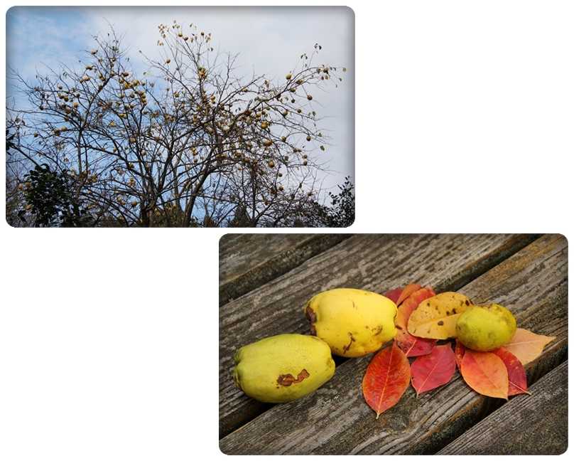 枝にもいっぱいまだ実が残ってるけど、地面の上にも落ちてしまった実がゴロゴロ