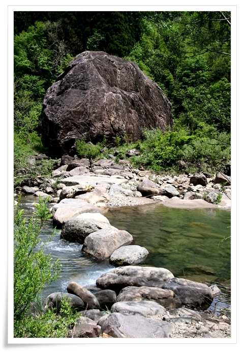 河原にゴロンと大きな岩が有って近くまで簡単に行けると思っていたのに、手前にちょっとした流れが有りました