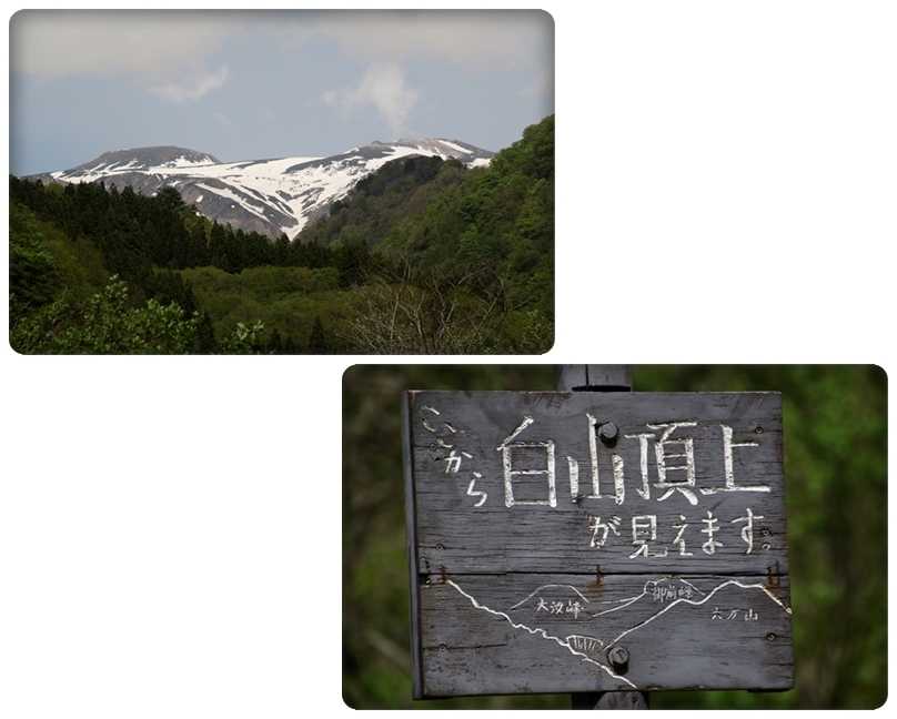 山頂付近にはまだ雪がたくさん残っている様子を見る事が出来ます