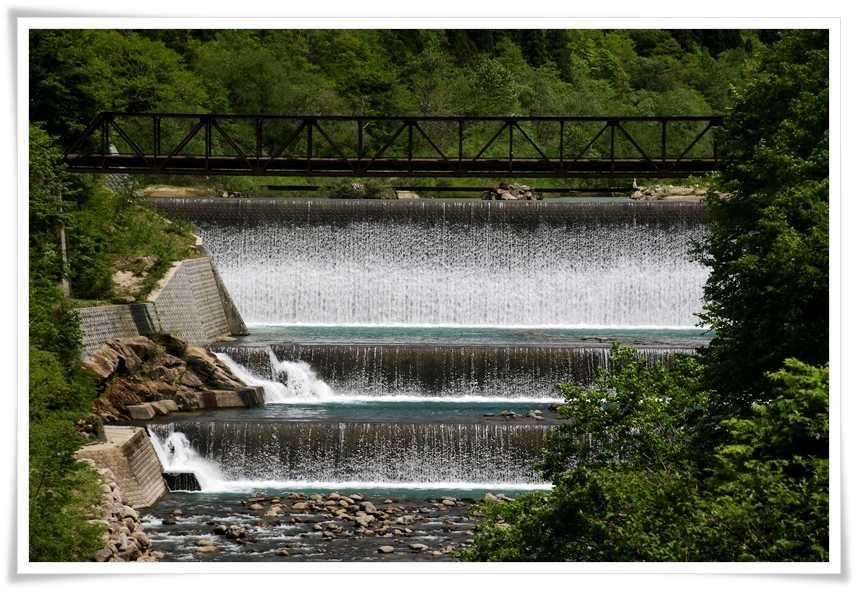 少し上流へ向けて車を走らせると見えて来る堰が有ります