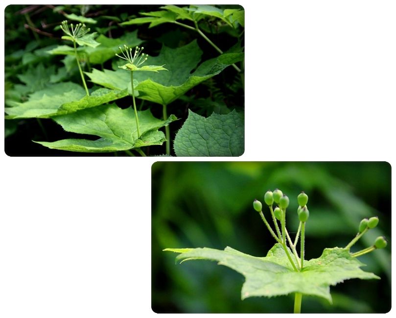 サンカヨウ の葉っぱはちょっと変わった形をしています