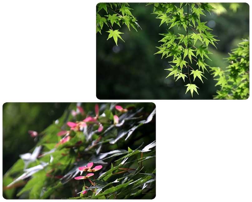 春に赤くて小さな花をたくさん咲かせていたのが赤いプロペラのような種になってます