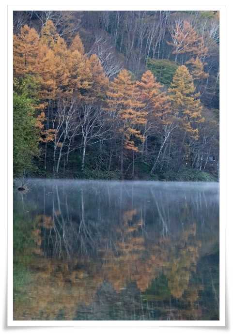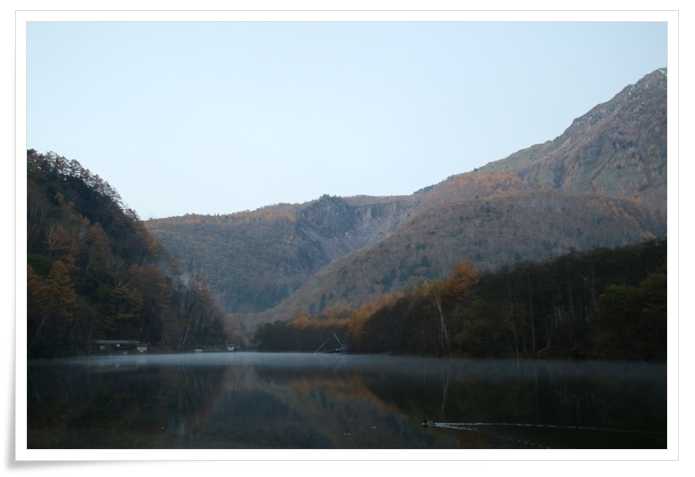 朝霧って言うのかな・・・・・・水面がガスで覆われる幻想的な雰囲気は夏場じゃないと見られないそうです