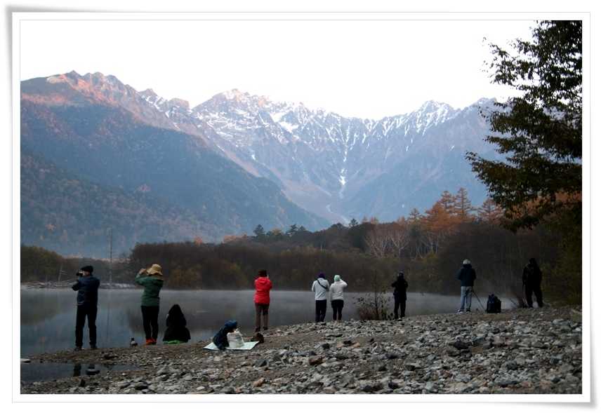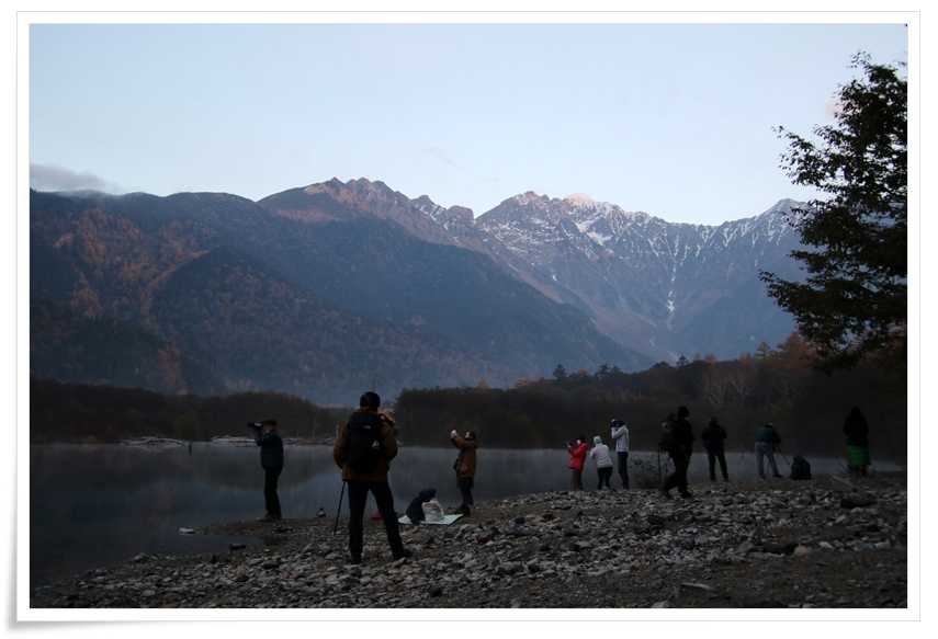 いろんな方向を向いて、思い思いにを撮っていた人たちみんなが 穂高連峰 に注目しているみたいです