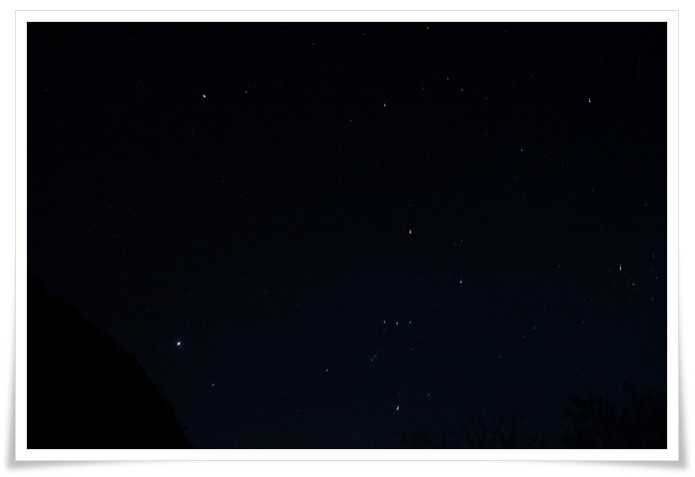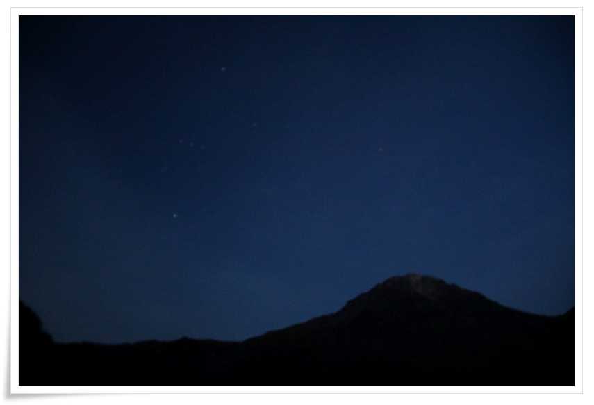 焼岳の左上の方にも オリオン座 が薄っすらと見えてるよ
