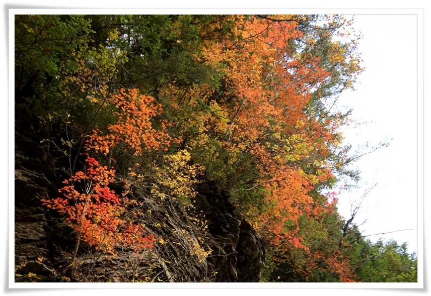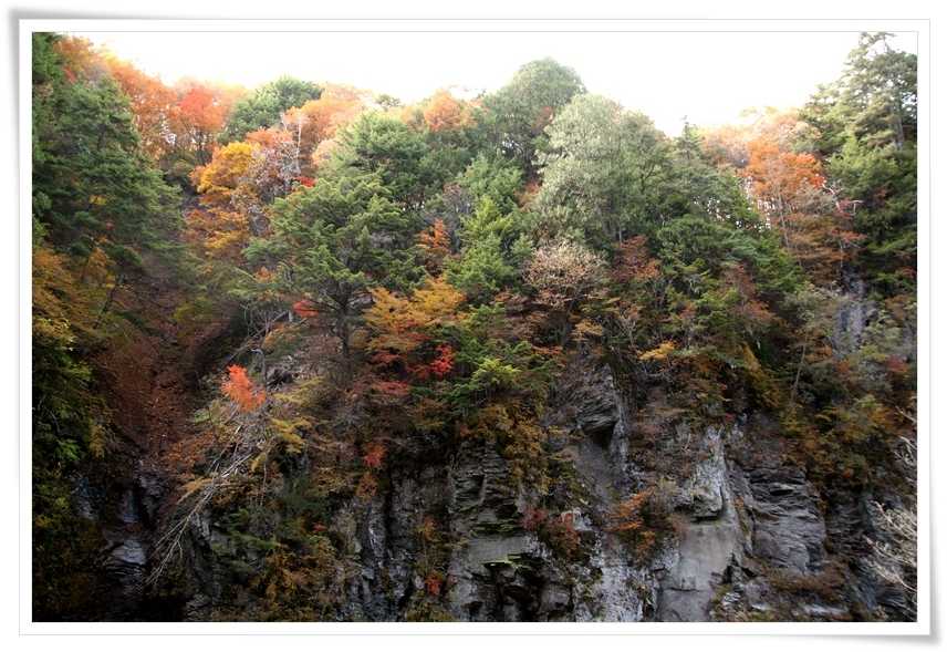 滝が流れ落ちているもっと上の方の崖には赤く色づいた木々も見えてました