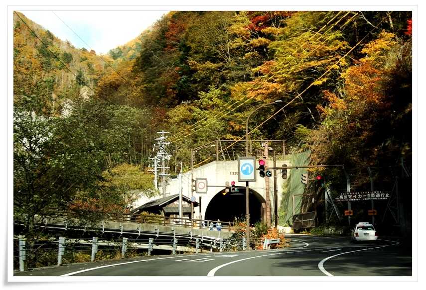 上高地 へと続く 釜トンネル の前を左折