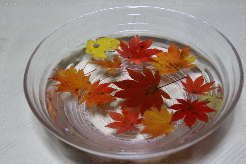 最後に立ち寄った 番所大滝 で拾ったモミジの葉っぱを水に浮かべて