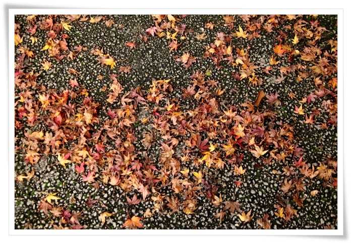 あそこの地面に落ちているモミジの葉っぱは綺麗かな