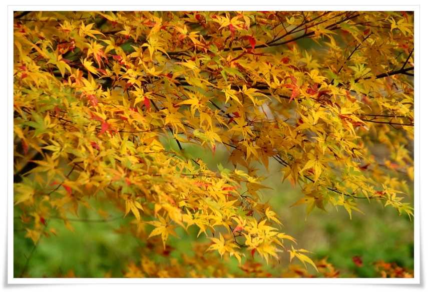 でも頭上のモミジはまだ緑色が残ってるから・・・・・・・