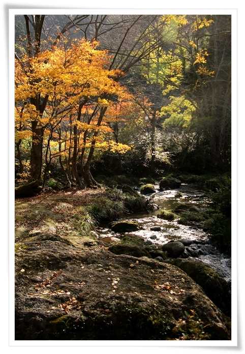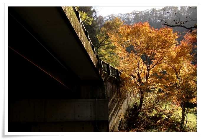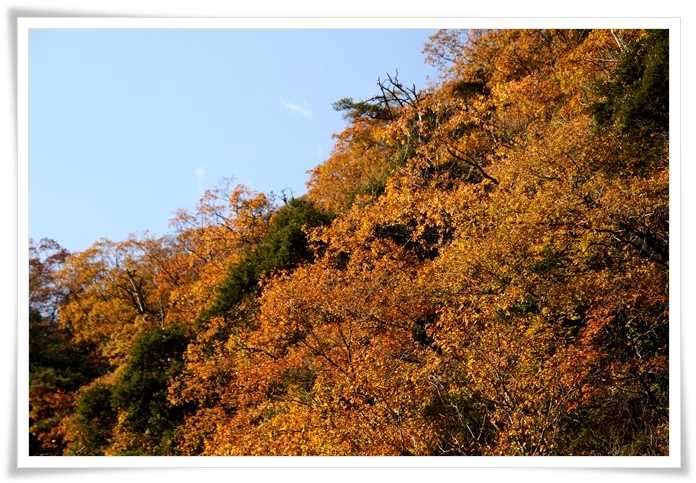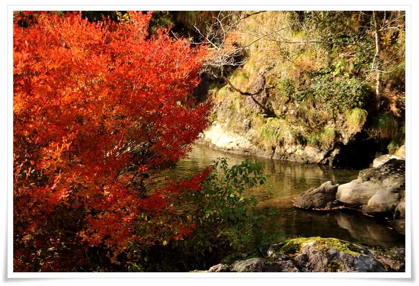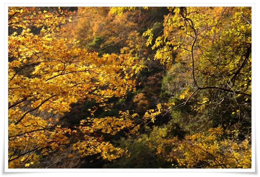 ここ、荒俣峽 は紅葉の名所と聞いていたのでもっとたくさんのモミジが有るんだと思っていたんだけどね