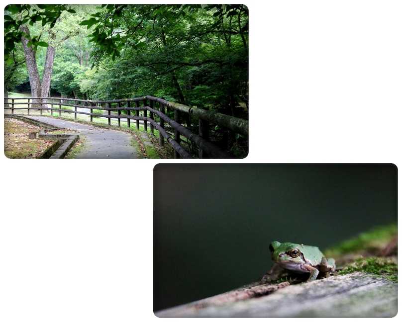 日陰になった手摺の上には ​アマガエル​ が1匹