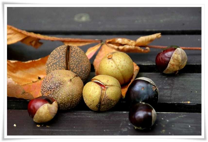 外皮が三つに割れた中からピカピカに光った実が現れますよ~