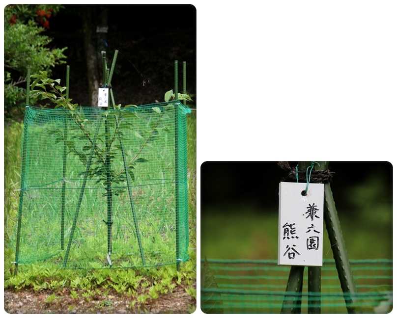 新しい苗木を守るためにネットと支柱が設置されているようです