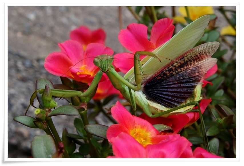 蜜を求めてやって来る昆虫を狙って花の上で待っていたのかな