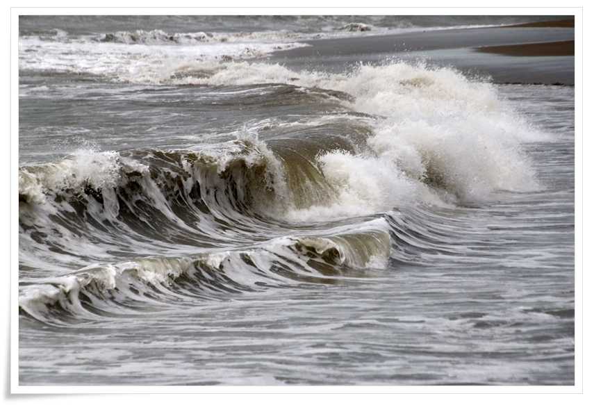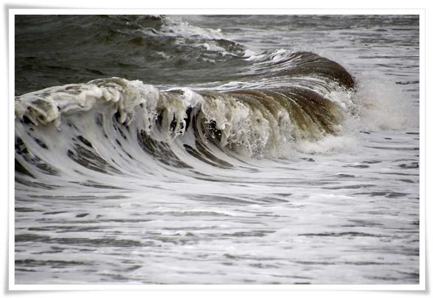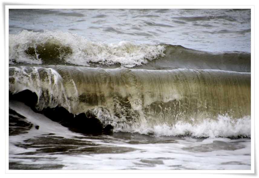 砂を巻き上げた波しぶきはちょっと茶色っぽいかな