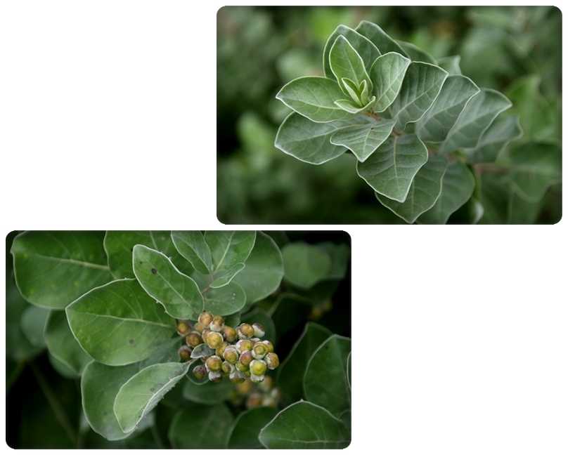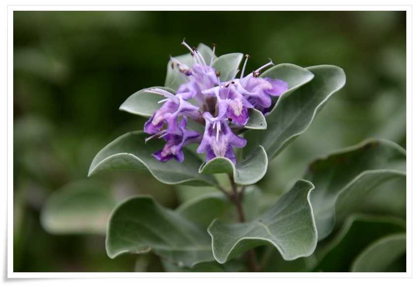 葉っぱには無数の細かい毛が生えているせいで白っぽく見えるかな