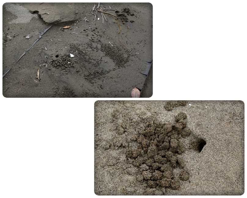 海岸のあちらこちらでカニの穴を目にします