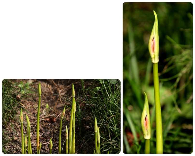 赤い蕾が鞘から出ているのが多くなってきたよ
