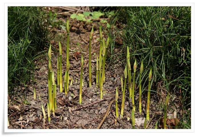 こちらは花芽が出る前に草刈りは終わっていたので茎は綺麗に伸びています