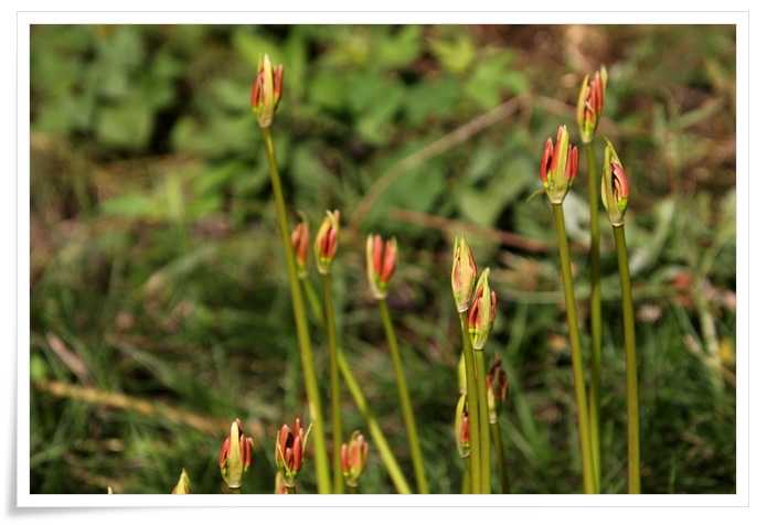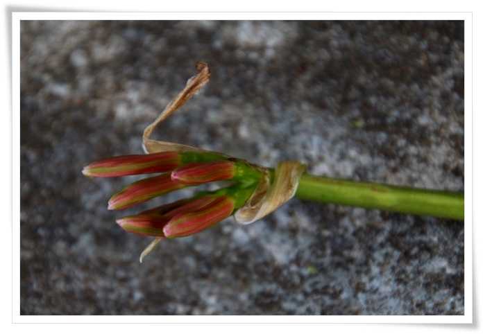蕾を包んでいた鞘みたいなのが外れて赤い蕾がもう出ちゃってるけどね